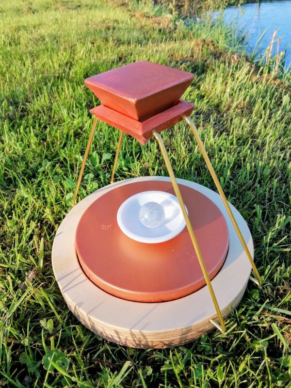 Na sliki je primer energijske plošče z invertirano piramido, narejene po želji specifično za globinsko čiščenje obeskov, nakita, kristalov in drugih izdelkov. S svojo intenzivno energijo odstrani vse morebitne postane vibracije, hkrati pa jih napolni s čisto, revitalizirajočo energijo.